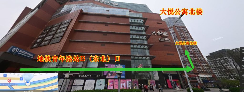 如果各位帅哥靓女乘地铁而来,那么从地铁青年路地铁B(东北口)在大多数情况下最方便,出了地铁口B口,一直向前,左侧飞越“维多利亚的秘密”之后,你们美丽的大眼睛就会看到大悦公寓了,那就向左进入,但是要去大悦公寓正门,进门之后还是一直向前,左侧飞越“房屋租赁”,前往北楼或者1号楼!走到尽头继续左转,再左转,进入一号电梯!亲们,伸出优美的手指按18层!亲们,18层1806室!我们一直在这里等你!